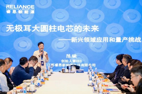 会上,睿恩新能源创始人、董事长陈璇女士发表了题为“无极耳大圆柱电芯的未来—新兴领域应用和量产挑战”的主旨演讲,引发了与会者的广泛关注和热烈讨论。